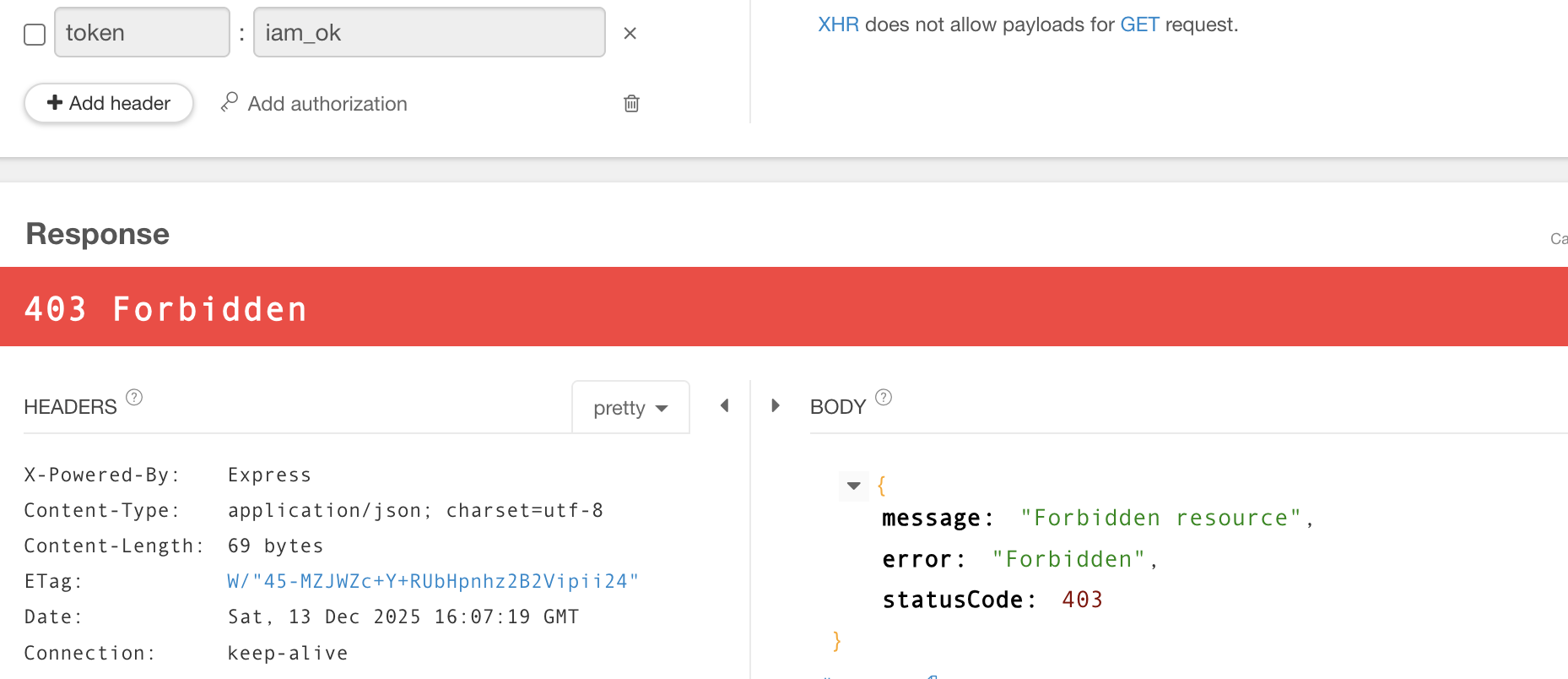 token을 안넣어주니까 403 에러를 반환하였다.