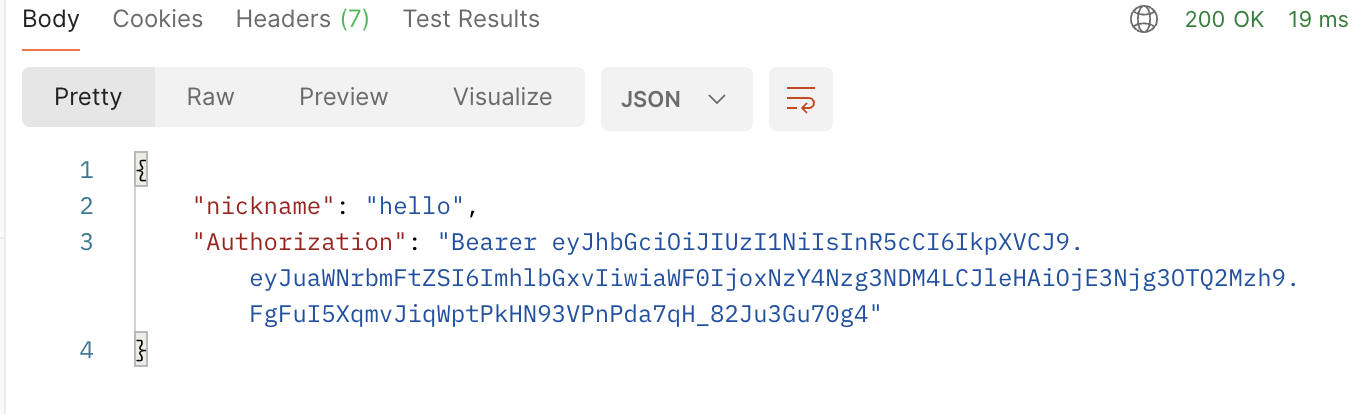 const result = { nickname , Authorization: await this.jwt.createJwt(nickname) };