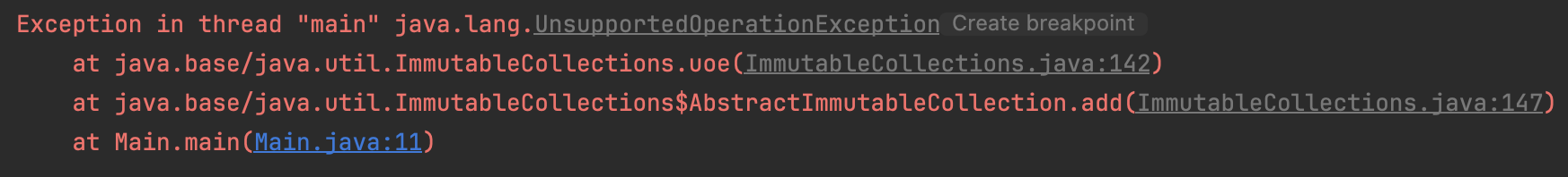 newList.add(6); // Exception in thread "main" java.lang.UnsupportedOperationException