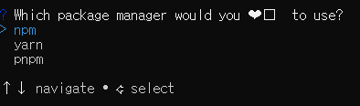 엔터를 눌러 npm으로 계속 진행한다.