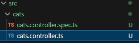 공식문서의 예제코드이다. 컨트롤러 파일에 위의 코드와 같이 수정을 해보자. 그렇다면 /cats 의 경로로 접속하면 문자열이 출력될 것이다. 컨트롤러에 대한 자세한 내용은 뒤에 작성할 포스트에 함께 정리하고자 한다.