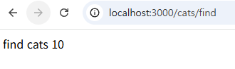 이제 다시 서버를 켠 후 localhost:3000/cats/find 경로로 접속해보자. 정상적으로 코드가 입력이 되었다면 아래의 이미지와 같이 결과가 출력이 된다.